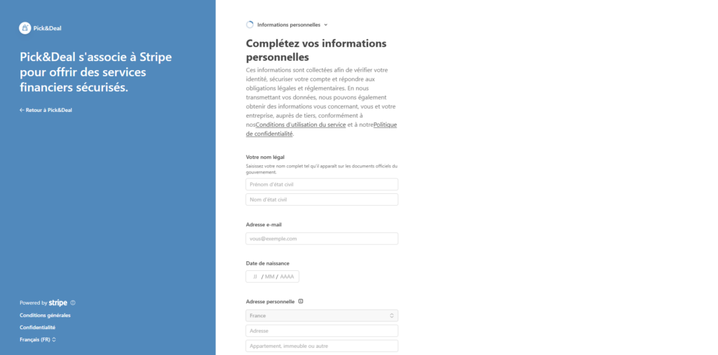 2. Remplir les informations, puis cliquez en bas sur « Passer à Stripe »
